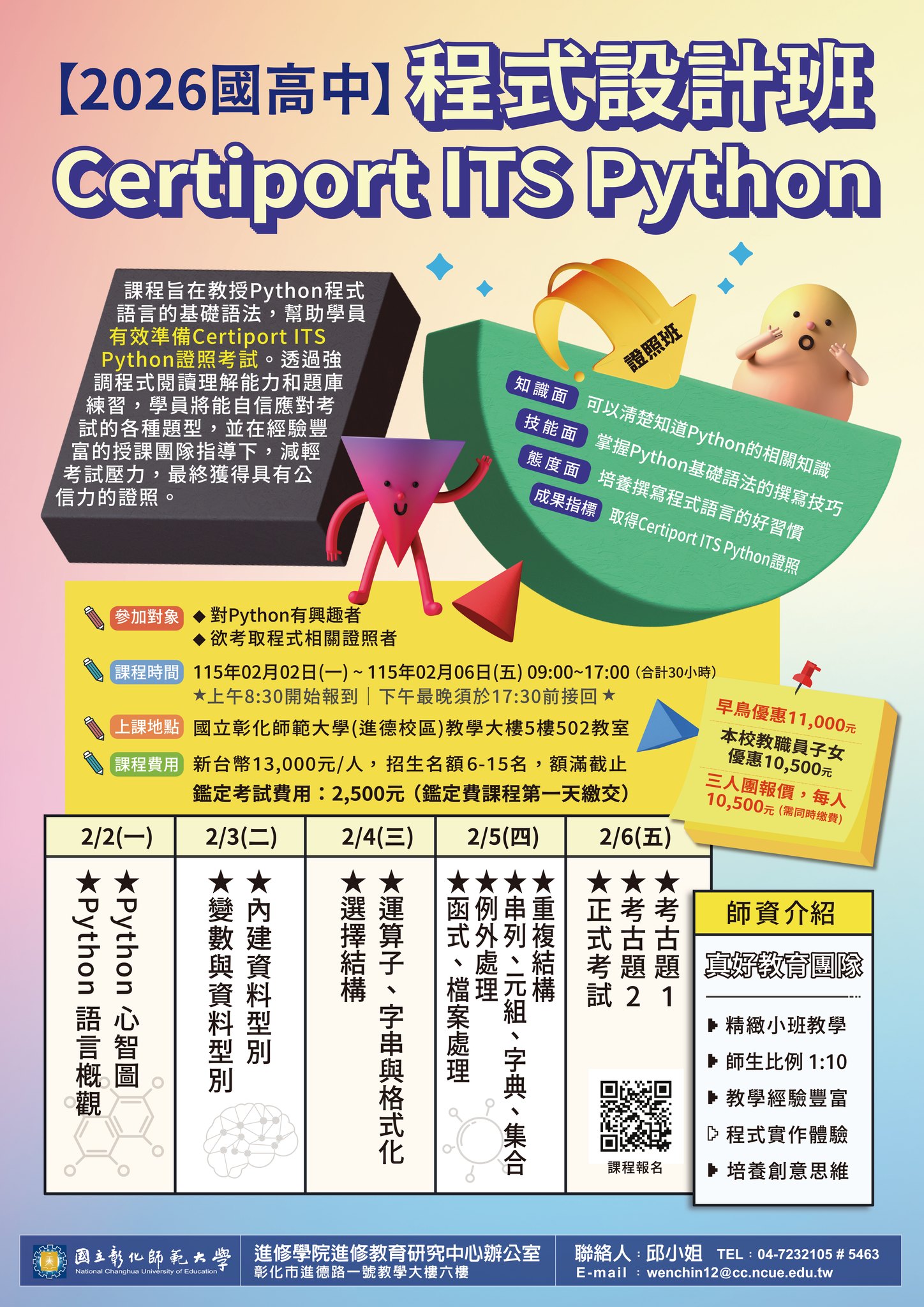 彰師大【2026國高中程式語言】Certiport ITS Python程式設計班」、「日語會話五十音基礎班」、「日語N3中級Ⅱ班」招生簡章